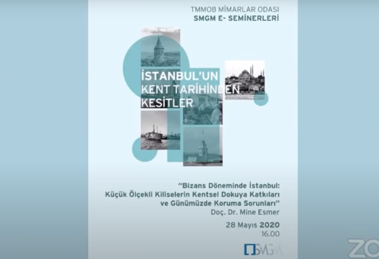 "Bizans Döneminde İstanbul: Küçük Ölçekli Kiliselerin Kentsel Dokuya Katkıları ve Günümüzde Koruma Sorunları" konulu seminer, FSMVÜ Mimarlık ve Tasarım Fakültesi Öğretim Üyesi Mine Esmer'in katılımı ve Doç. Dr. Zeynep Eres'in moderatörlüğü ile 28 Mayıs 2020 Perşembe günü, saat 16.00'da gerçekleşmiştir. Kaçırmış olanlar için you tube kaydı bağlantısı: