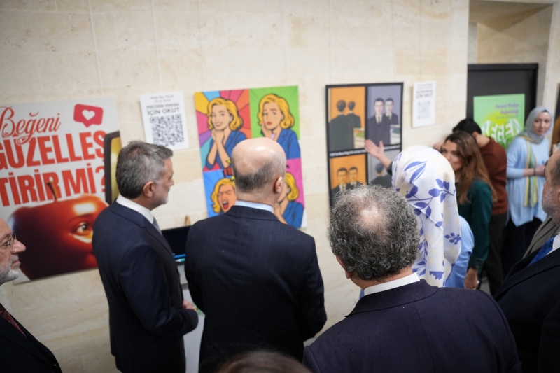 Dr. Öğr. Üyesi Amine Refika'nın lisans, yüksek lisans ve sanatta yeterlik dersleri kapsamında Beğen Kaydet Paylaş" isimli "Sosyal Medya Bağımlılığı" temalı Poster ve Video Sanatı Öğrenci Sergisinin 22 Aralık Pazartesi 2025 tarihinde açılışı yapıldı. Serginin açılışı Rektörümüz Sayın Prof. Dr. Nevzat Şimşek eşliğinde YÖK Başkanımız Sayın Prof. Dr. Erol Özvar'ın teşrifleriyle gerçekleştirildi. Sayın YÖK Başkanımız'a sergimize gösterdiği ilgiden ötürü teşekkürlerimizi sunarız.