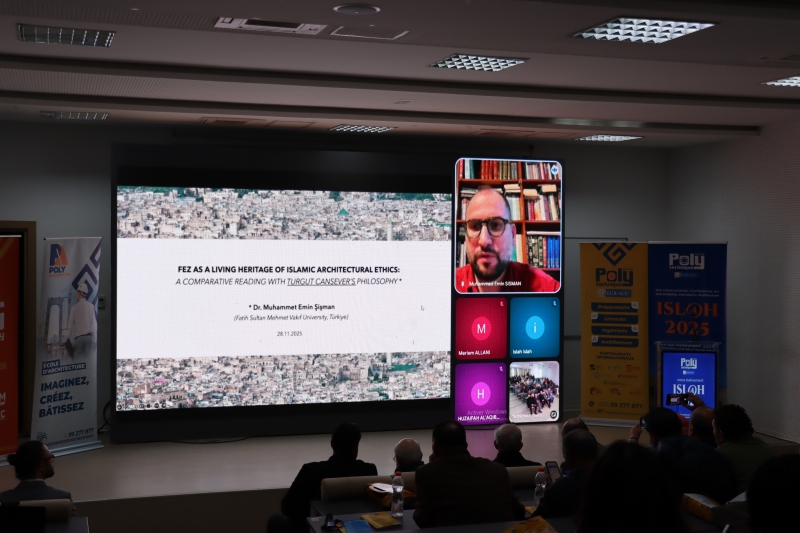 Aynı gün Fakültemizin eski Dekanlarından Prof. Dr. İbrahim Numan’ın “Mimarın Şahsiyet Yapılandırılmasının Sürdürülebilir İnşaası / The Sustainable Construction of the Architect’s Personality” adlı bildirisinin akabinde Dr. Öğr. Üyemiz Hakkı Can Özkan, Dr. Öğr. Üyemiz Mesut Dural ve YL öğrencimiz Hamza Habbab ile birlikte hazırladıkları “Bir Şiir Olarak Mimarlık: Ronda Sürecinin İncelenmesi – ‘Merdiven’ Şiiri Örneği / Architecture as Poetry: Investigation of the Ronda Process - The Case of the ‘Merdiven’ Poem” başlıklı bildiriyi, programın ikinci günü ise Dr. Öğr. Üyesi Mesut Dural, arkadaşı Dr. Öğr. Üyesi Hakkı Can Özkan ve YL öğrencimiz Dima Habbaz ile birlikte hazırladıkları “Kültür ve Mimari İfade Olarak Renk: Karşılaştırmalı Tarihsel Bir Analiz / Color as Culture and Architectural Expression: A Comparative Historical Analysis” başlıklı bildiriyi sundular. Ayrıca Dr. Öğr. Üyesi Muhammet Emin Şişman da “İslam Mimari Etiğinin Yaşayan Bir Mirası Olarak Fez: Turgut Cansever’in Felsefesiyle Karşılaştırmalı Bir Okuma / Fez as a Living Heritage of Islamic Architectural Ethics: A Comparative Reading with Turgut Cansever’s Philosophy” başlıklı bildirisi ile Türkiye’den çevrimiçi olarak katıldı.